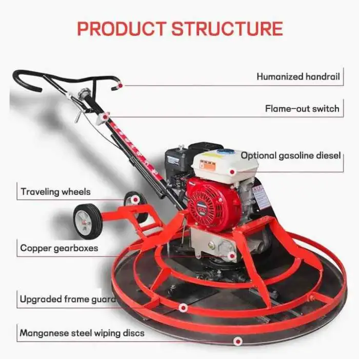 The 60CM-120CM Power Trowel is powered by a gasoline engine.