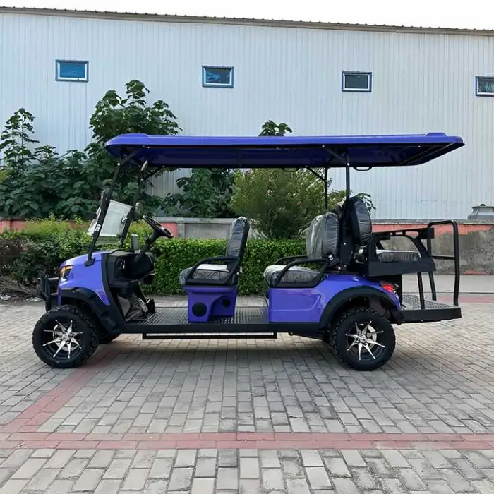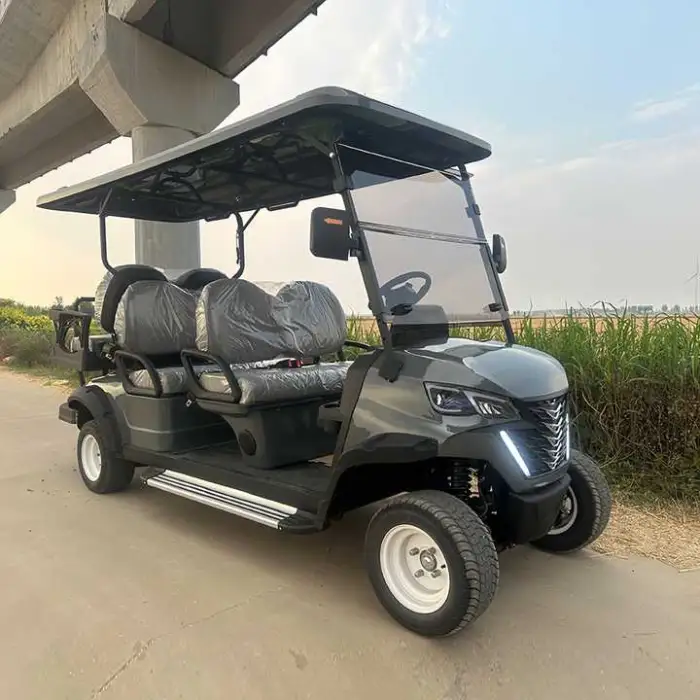 This cart is ideal for golf courses, sightseeing tours, campus transportation, large estates, and outdoor events.