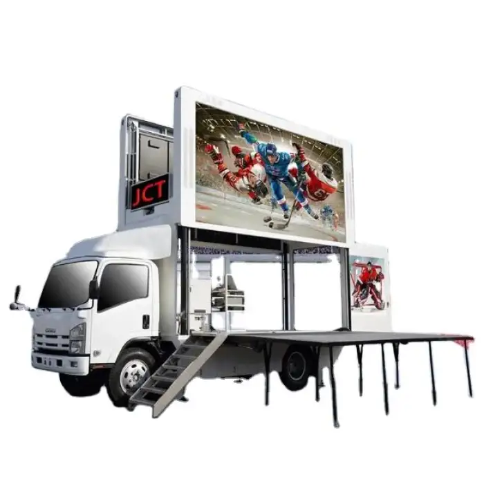 While designed for outdoor visibility, the mobile LED truck can also be utilized for indoor events where high brightness is beneficial.