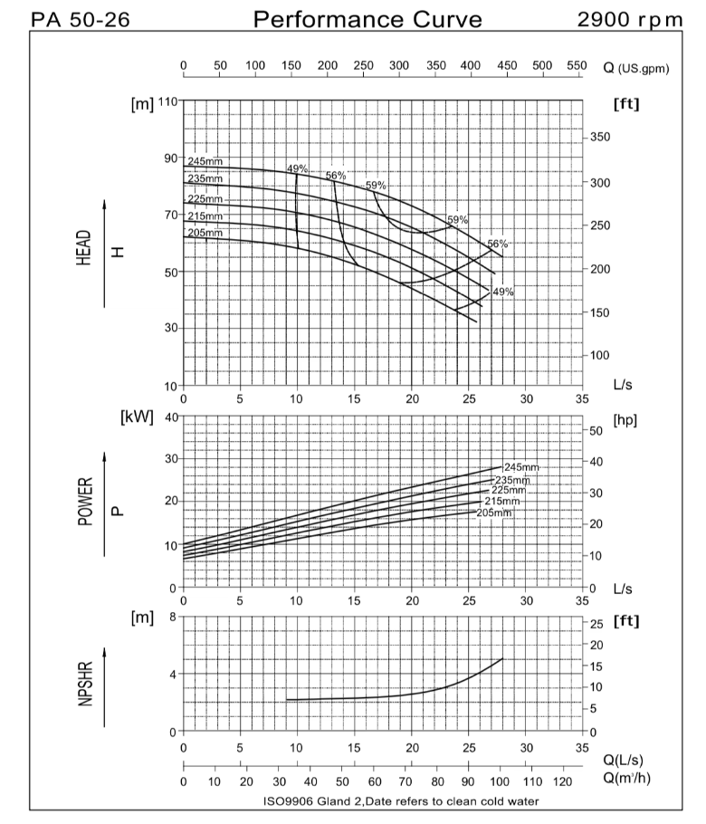 The pump has a flow rate of 80 cubic meters per hour, making it suitable for large-scale pumping operations.