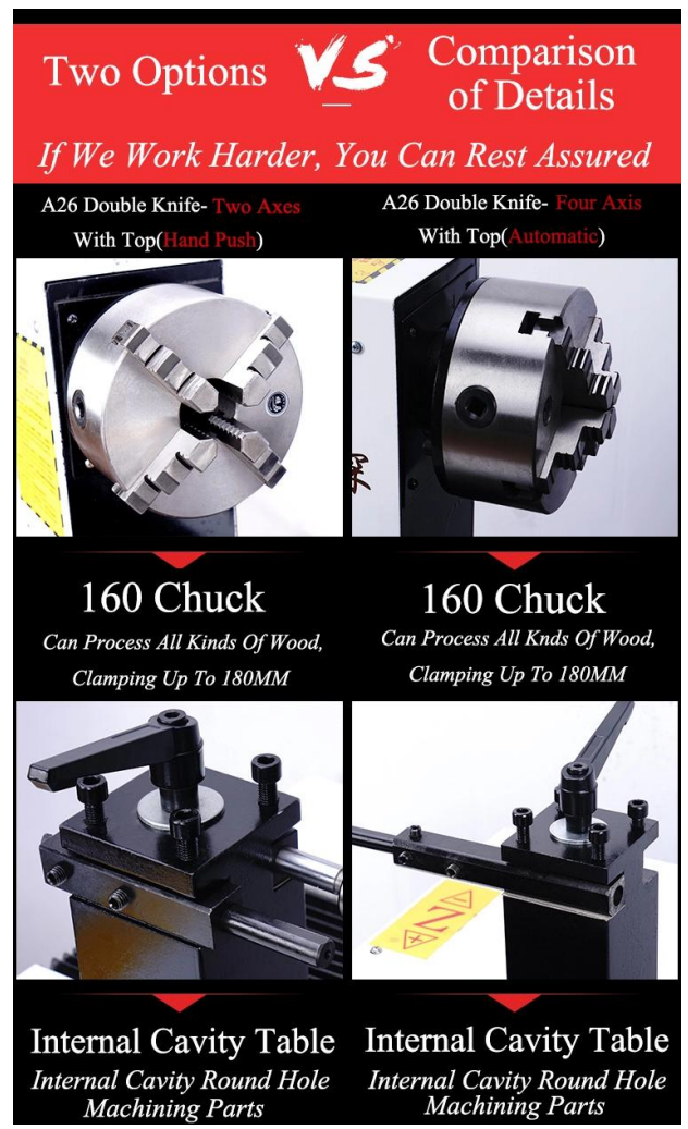 4. What are the key features of the A26 Double Knife-Four Axis CNC Wood Turning Lathe Machine?