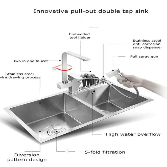 To maintain its appearance, it's recommended to clean the sink regularly with mild detergents and avoid harsh chemicals that can damage the stainless steel.