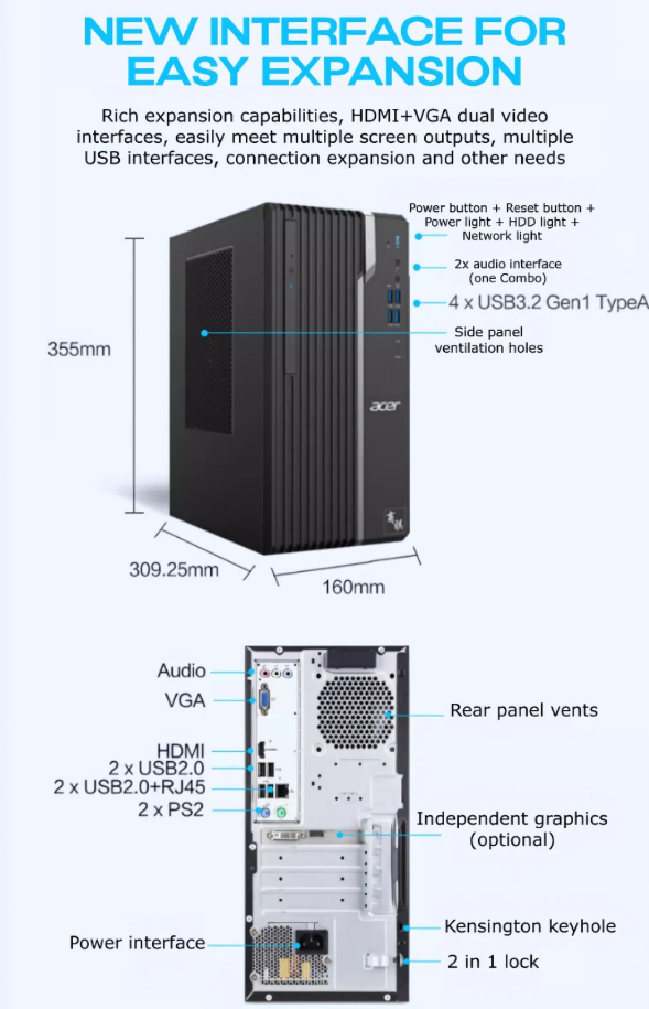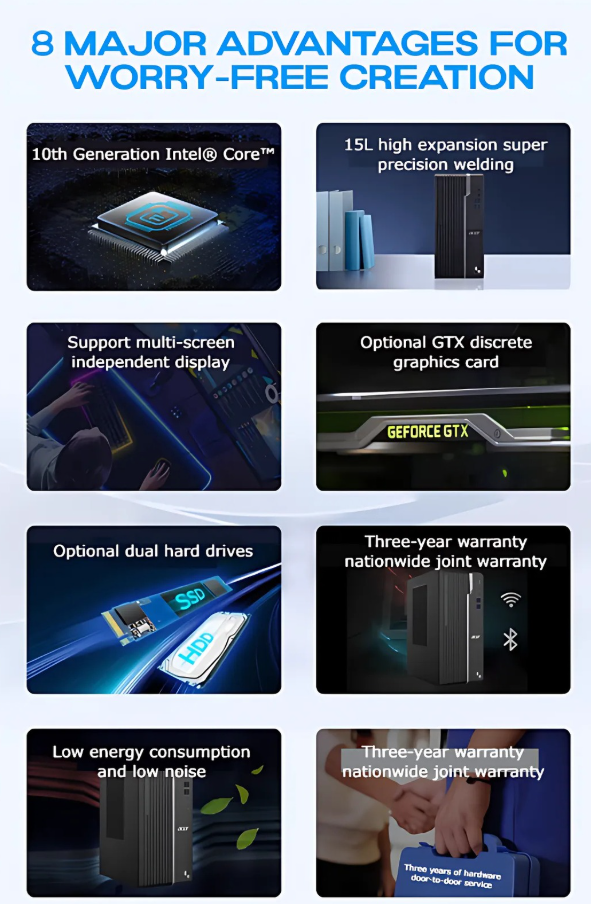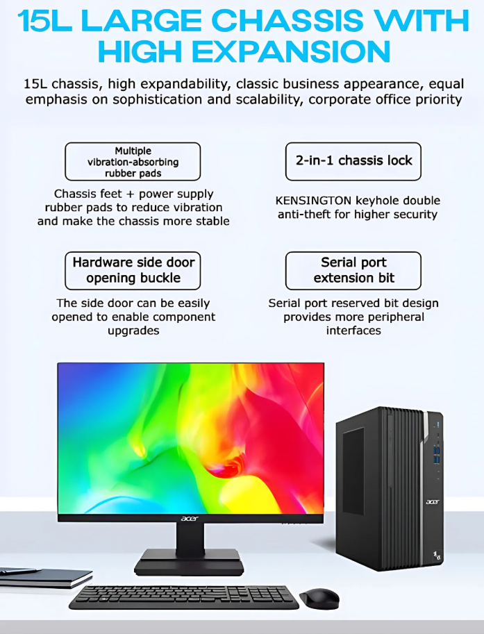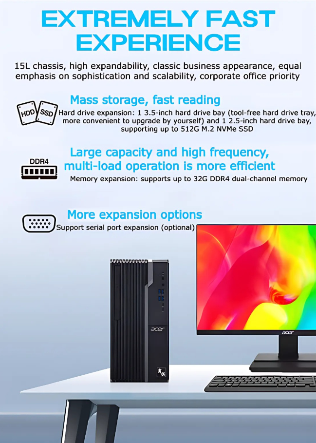 This desktop offers flexible storage configurations, including SSDs up to 1TB and additional mechanical drives up to 2TB.