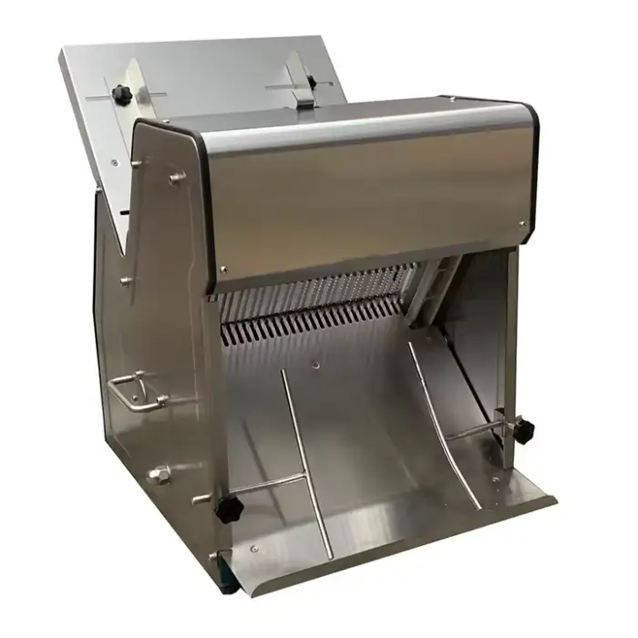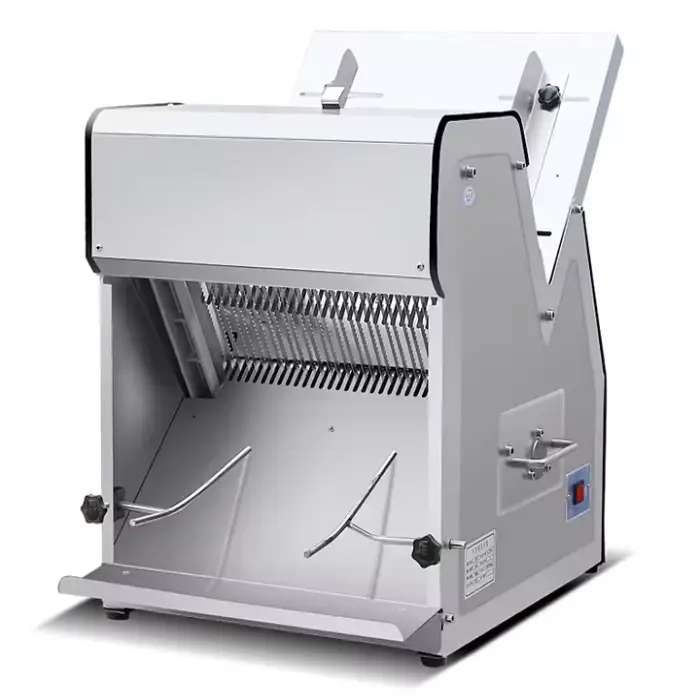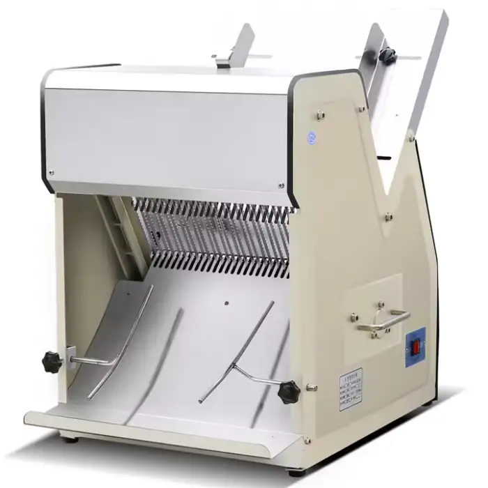 This bread slicer is ideal for use in restaurants, commercial bakeries, cake shops, snack food factories, and meat processing plants.