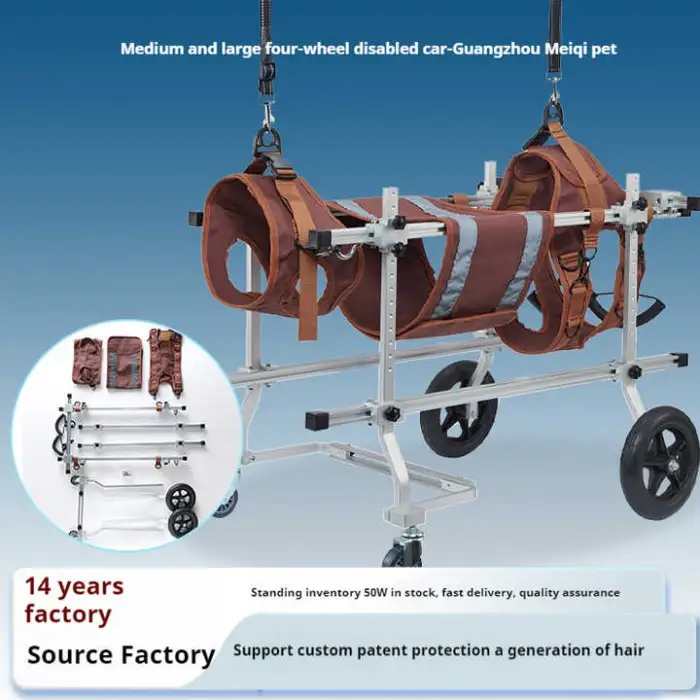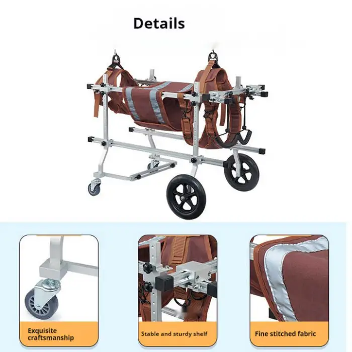 The wheelchair is constructed from lightweight and durable aluminum alloy, ensuring both strength and ease of use for your pet.