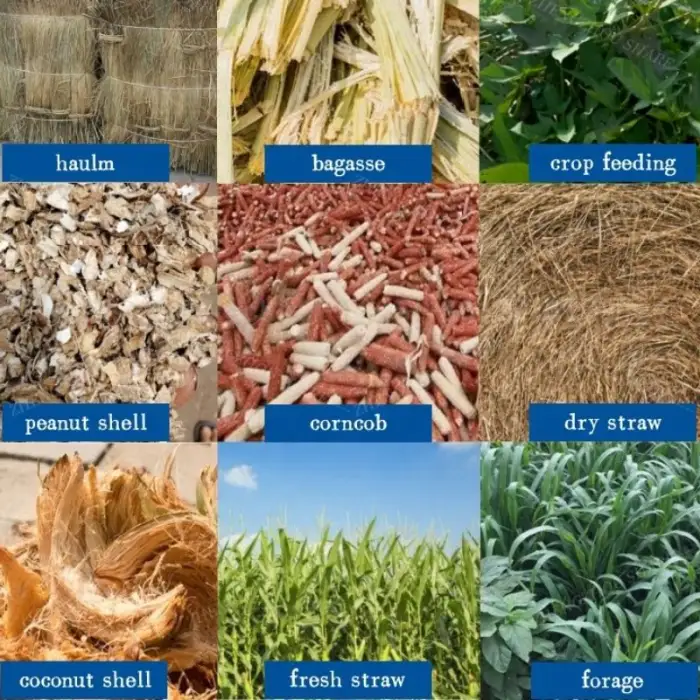 The machine can process hay, silage, and grass, making it suitable for various forage materials.