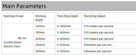 The trencher can create furrows with depths ranging from 0.5 meters to 1 meter.