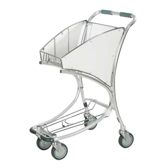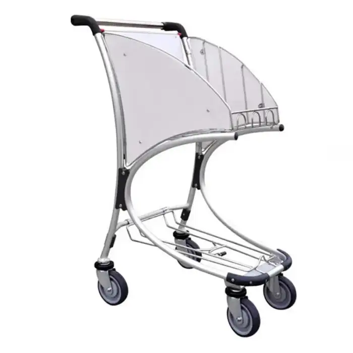 The Airport Trolley is made from lightweight and durable aluminum, ensuring easy handling and long-lasting use.
