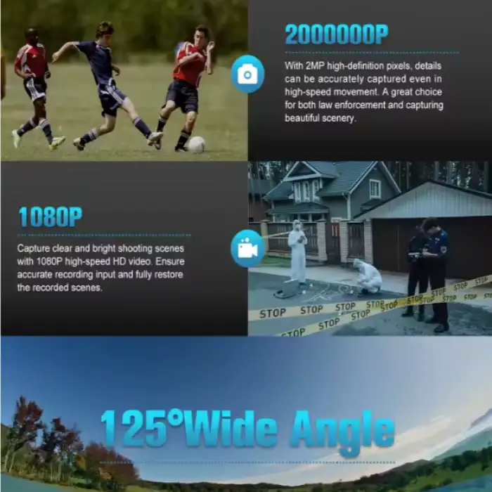 The AKEEYOP action camera features a wide-angle view of 125°.