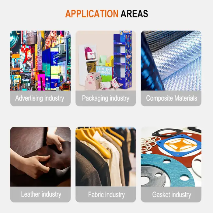 Industries such as furniture manufacturing, upholstery, and custom textile fabrication can greatly benefit from the efficiency of this cutting machine.