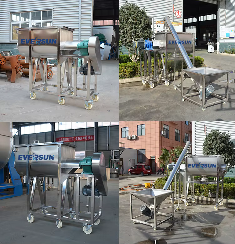 The Animal Feed Ribbon Mixer is designed to blend various materials, including dry powders, granules, animal feed ingredients, chemicals, and plastics.