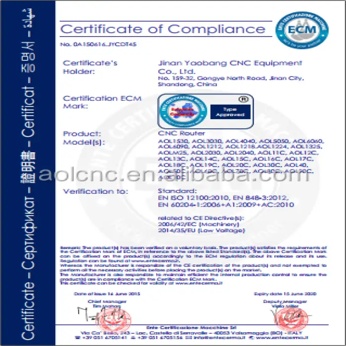 Yes, the AOL-1625 Cutting Machine comes with a CE certificate, ensuring it meets European safety standards.