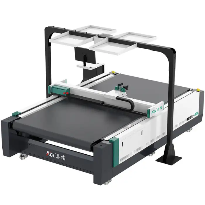 The AOL-1825 is designed to cut various thicknesses of leather, making it suitable for applications in shoe manufacturing, jacket production, car mats, and more.