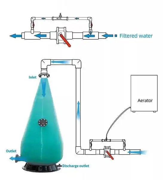 The sewage outlet allows for easy removal of waste and sediment from the bottom of the oxygen cone, ensuring clean operation and maintenance.