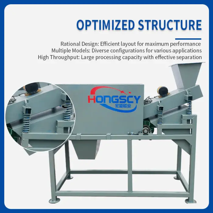 This separator is suitable for a variety of bulk materials, including those found in food processing, recycling, mining, chemical manufacturing, and plastic and rubber industries.