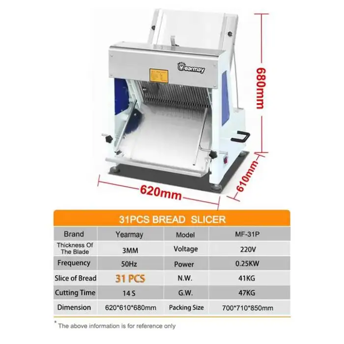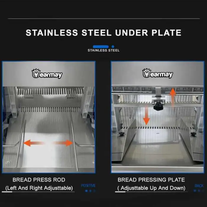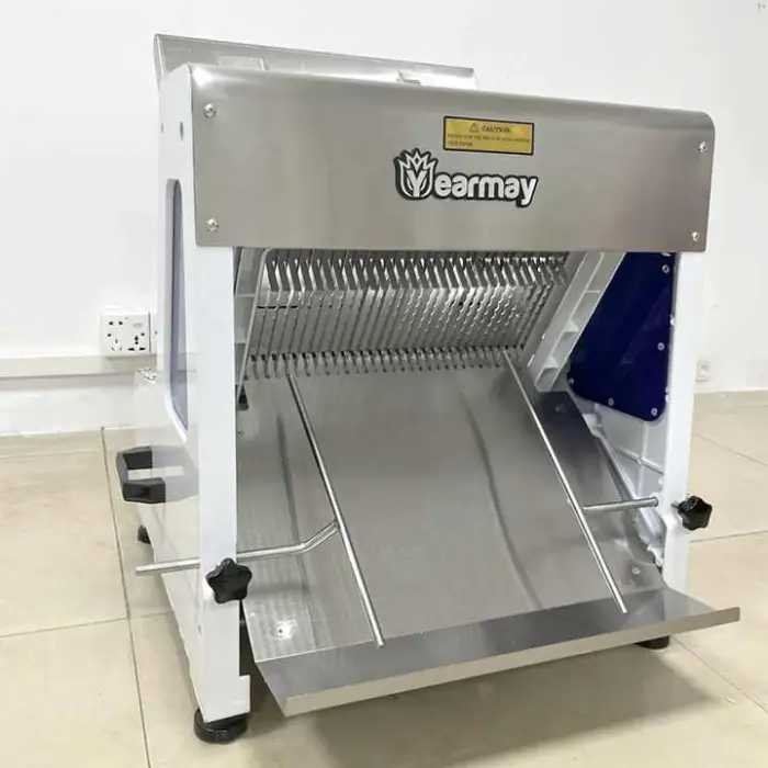 The machine can slice various types of bread, including white bread, whole wheat, rye, and even specialty loaves, making it versatile for different bakery needs.