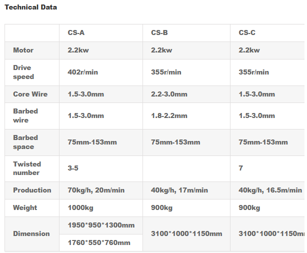 This machine is capable of producing barbed wire with a diameter ranging from 1.6 mm to 3 mm.