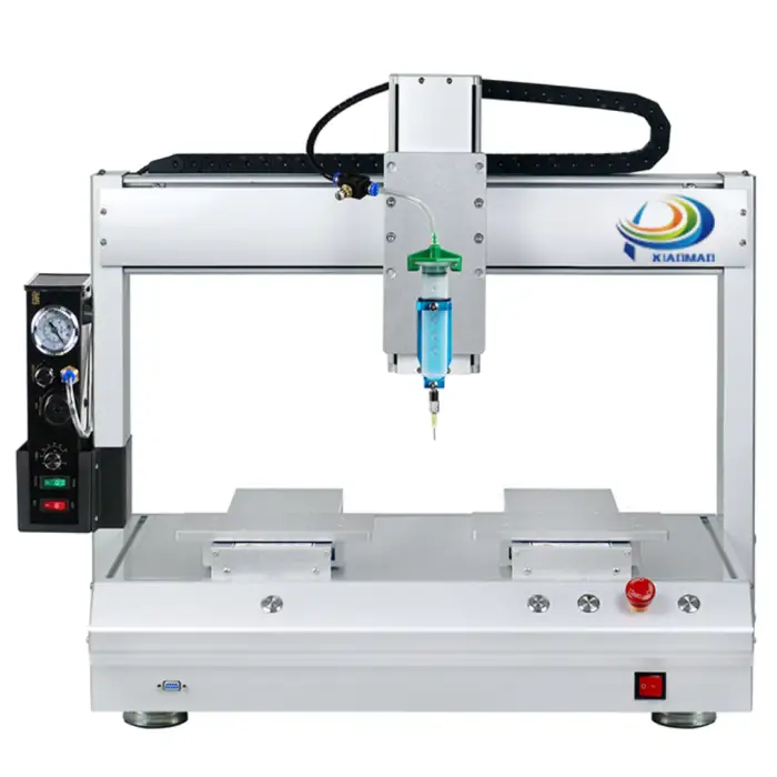 The machine can dispense glue at a maximum speed of 300 mm/s, ensuring efficient application.