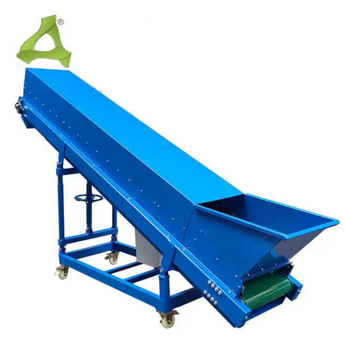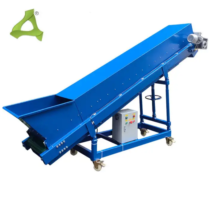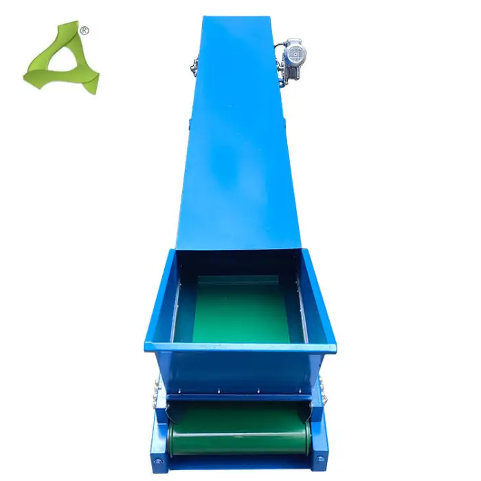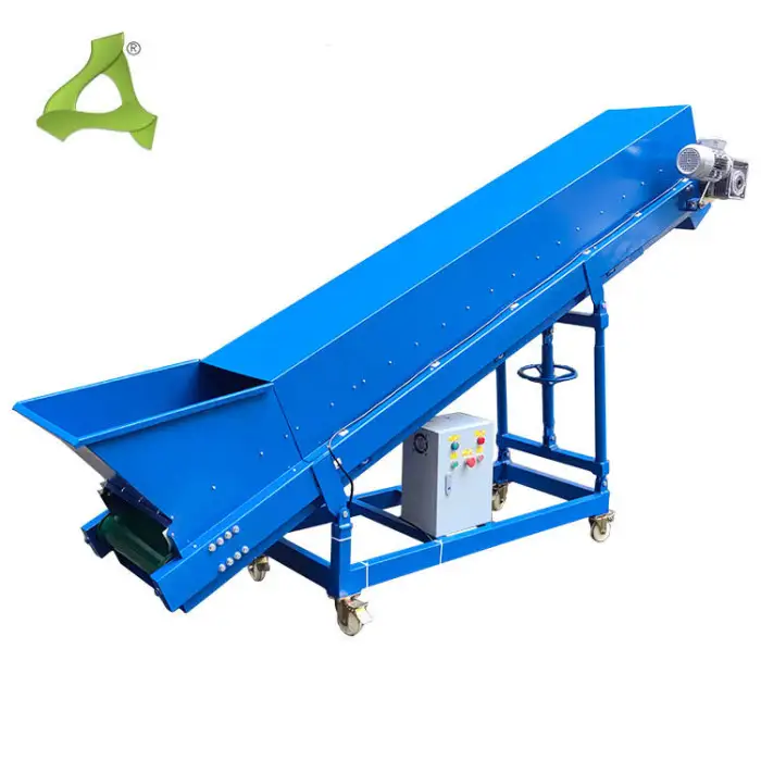 The incline bucket elevator is designed to lift materials vertically, utilizing buckets attached to a conveyor belt for efficient transport.