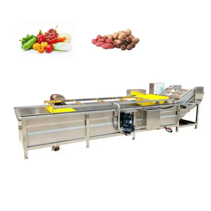 The Automatic Fruit and Vegetable Bubble Cleaning Machine is made from durable stainless steel, ensuring long-lasting performance.