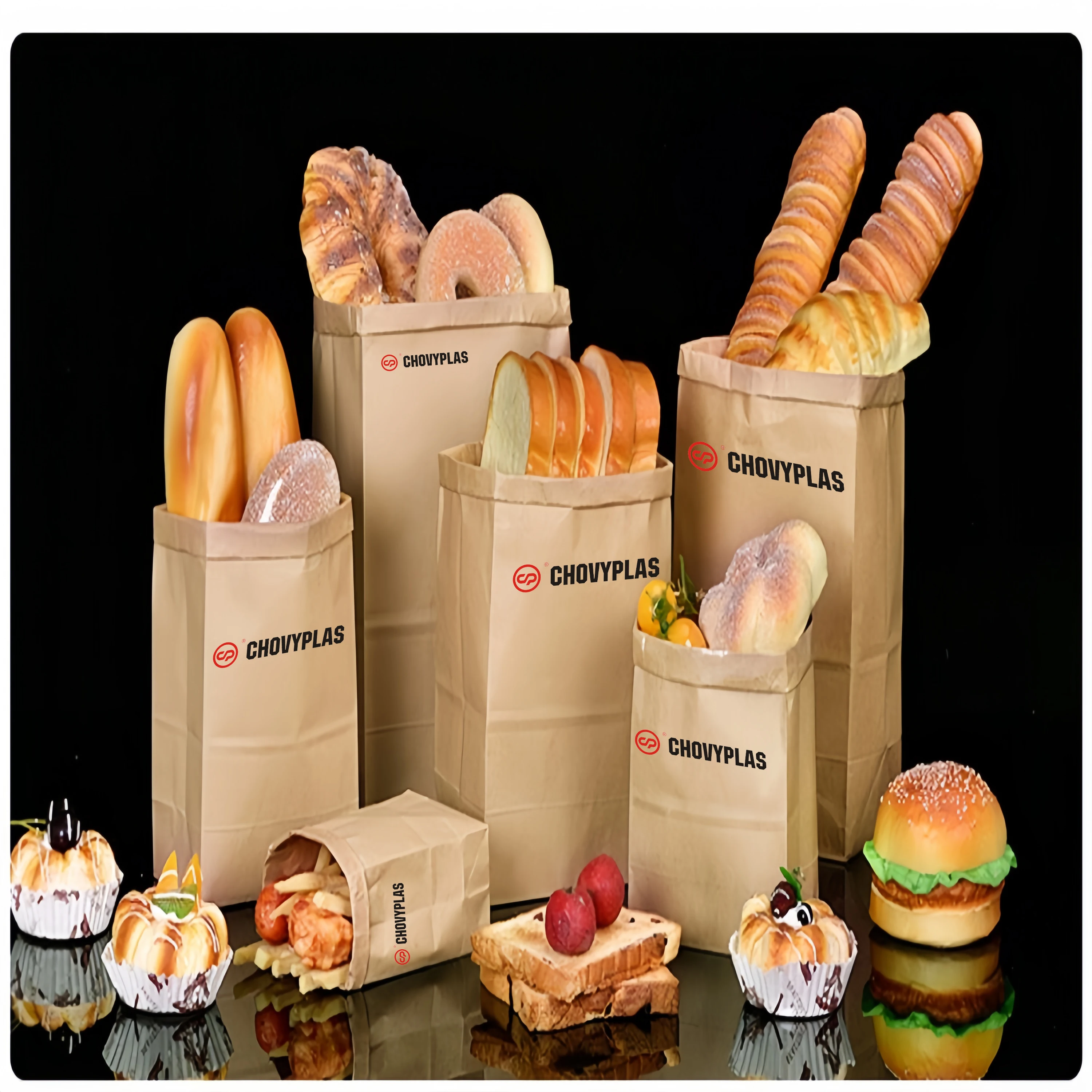 This machine can produce various types of bags including food bags, shopping bags, fruit bags, paper bags, and cloth bags.