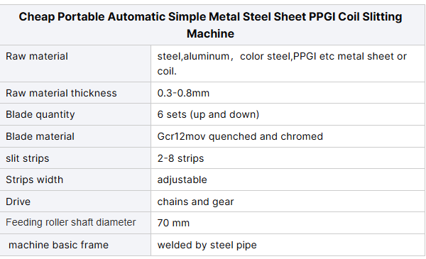 The Portable Automatic Simple Metal Steel Sheet PPGI Coil Slitting Machine is designed to process steel coils, specifically GI and PPGI materials.