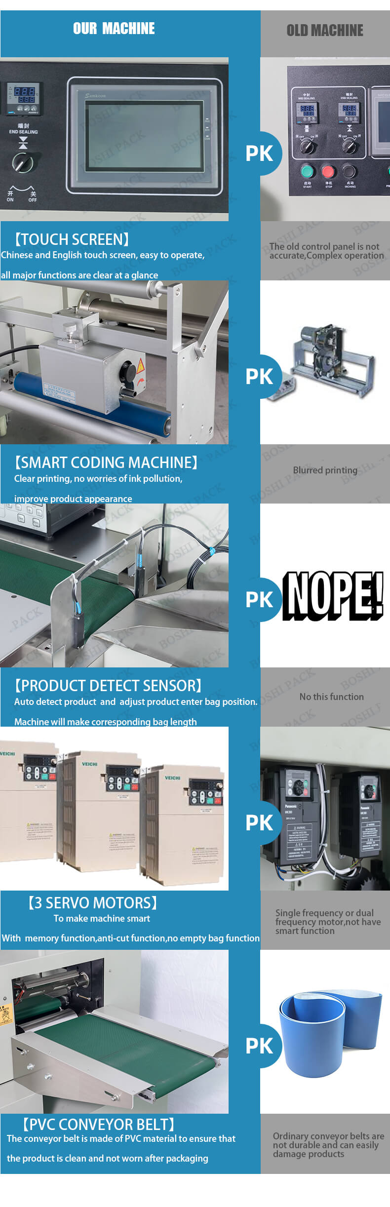 Warranty terms, available certifications (e.g., CE) and customization options (film width, conveyor length, output conveyor customization, printing modules, additional languages) are typically handled per order. Contact Boshi Pack sales for detailed warranty terms, certification documents and customization quotes.