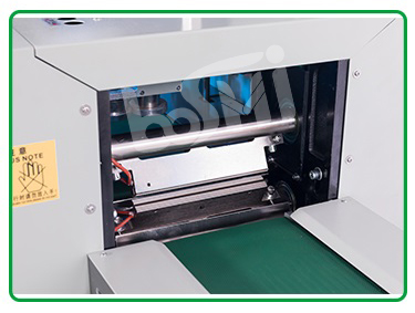 Film width capability depends on model: BS-350X ≤350 mm, BS-450X ≤450 mm, BS-600X ≤600 mm. Compatible film materials include OPP, CPP, OPP/PE, PET/PE and aluminum laminates. Confirm compatibility with your specific film structure prior to ordering.