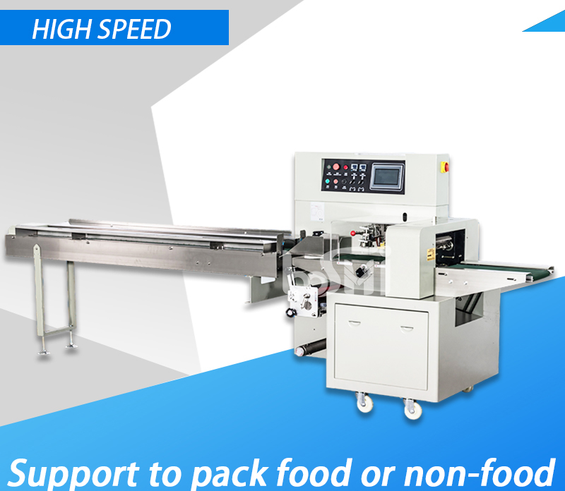 Available models include BS-350X, BS-450X and BS-600X. Packing speed varies by model: BS-350X: 20–180 bags/min; BS-450X: 30–150 bags/min; BS-600X: 30–150 bags/min. Actual speed depends on product size, film, and bag format.