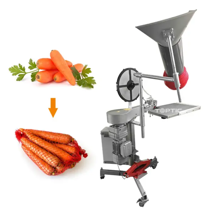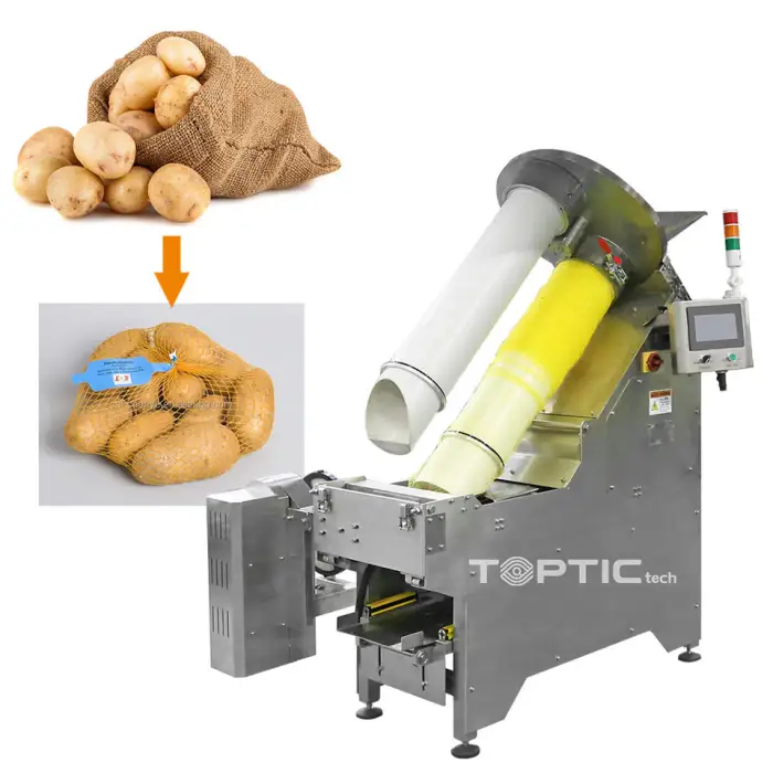 The machine supports customizable bag sizes and types, allowing you to pack a variety of produce efficiently.