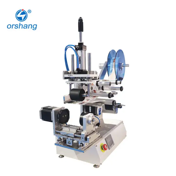 The Orshang Semi-Automatic Plastic Box Plane Roller and Motor Rotary Labeling Machine can label between 15 to 25 pieces per minute.