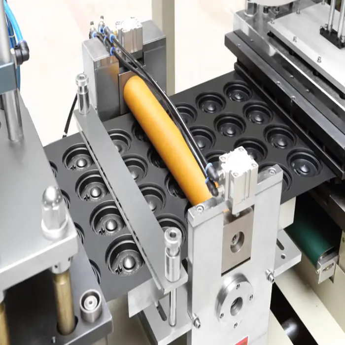 The machine can produce coffee cup lids at a speed of 15 to 45 cycles per minute.