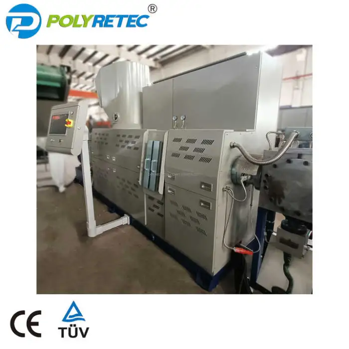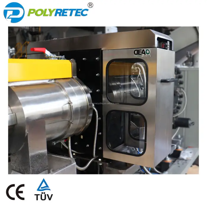 The pelletizer employs a water ring cutting method to ensure high-quality granules are produced from the recycled plastics.