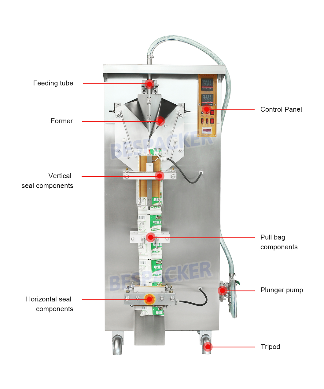 The machine is suitable for packing liquids such as milk, soymilk, and soda water.