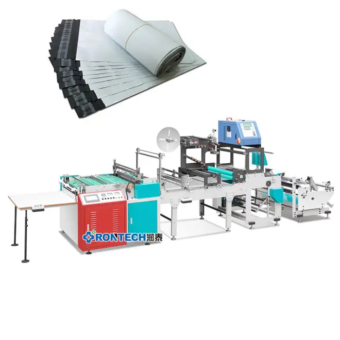 This machine produces self-adhesive courier bags suitable for various packaging needs.