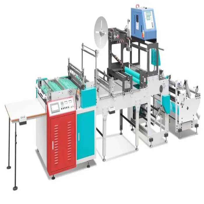 The machine automates the sealing and cutting processes for efficiency and consistency in bag production.