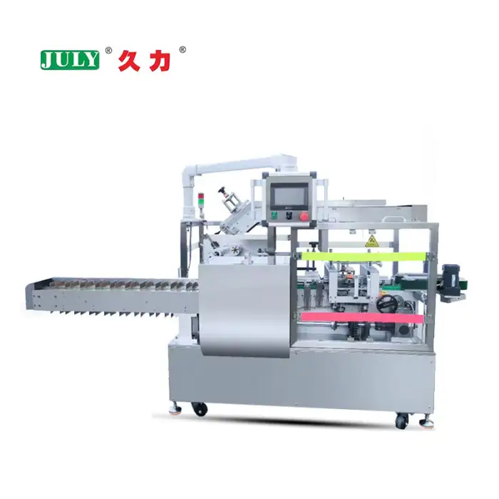 The machine's automatic features and high-speed packaging capability of 15 boxes per minute enhance efficiency in the packaging process.