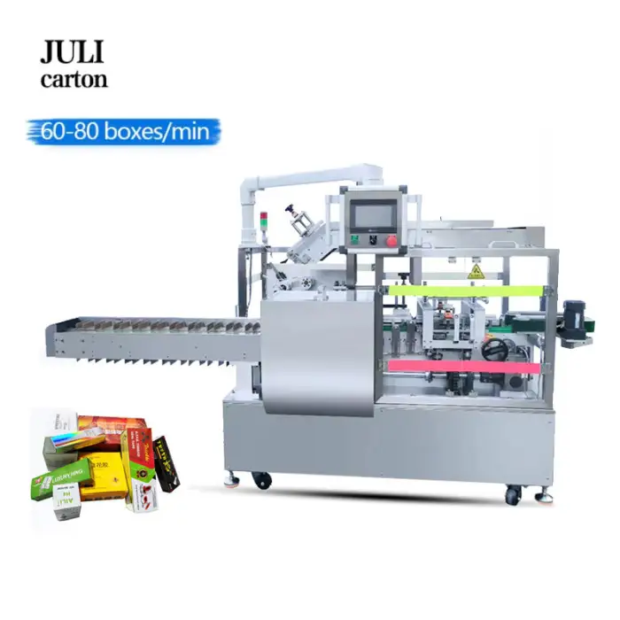The Automatic Skin Care Products Food Daily Necessities Box Packaging Machine is suitable for packaging a variety of solid products, including food items, cosmetic and skincare products, beverages, chemical products, and textiles.