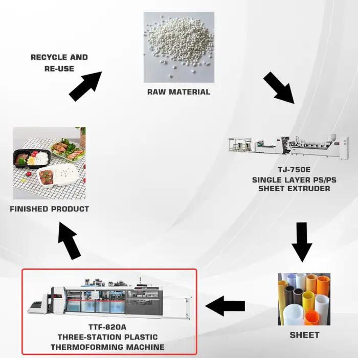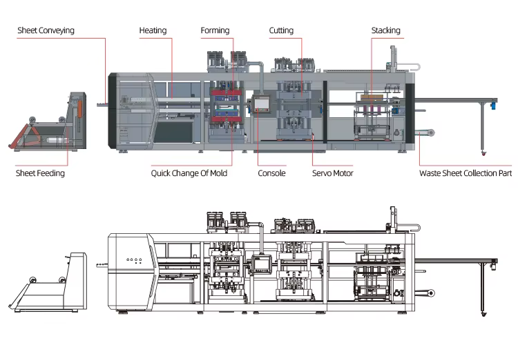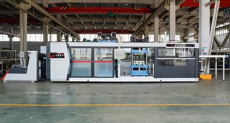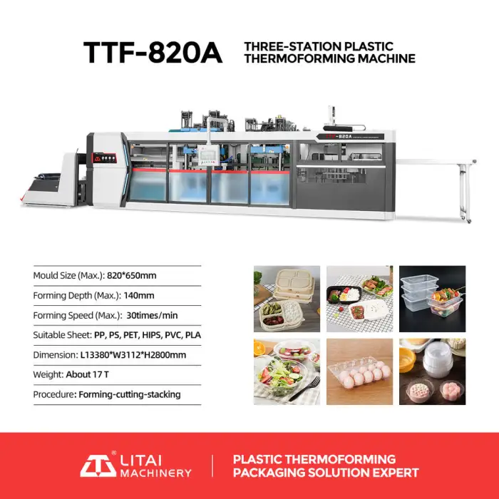The machine boasts a high production speed of 30 cycles per minute, allowing for efficient production of food packaging containers.