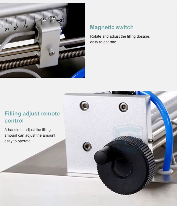 The pneumatic drive ensures reliable performance and consistent filling throughout the process.
