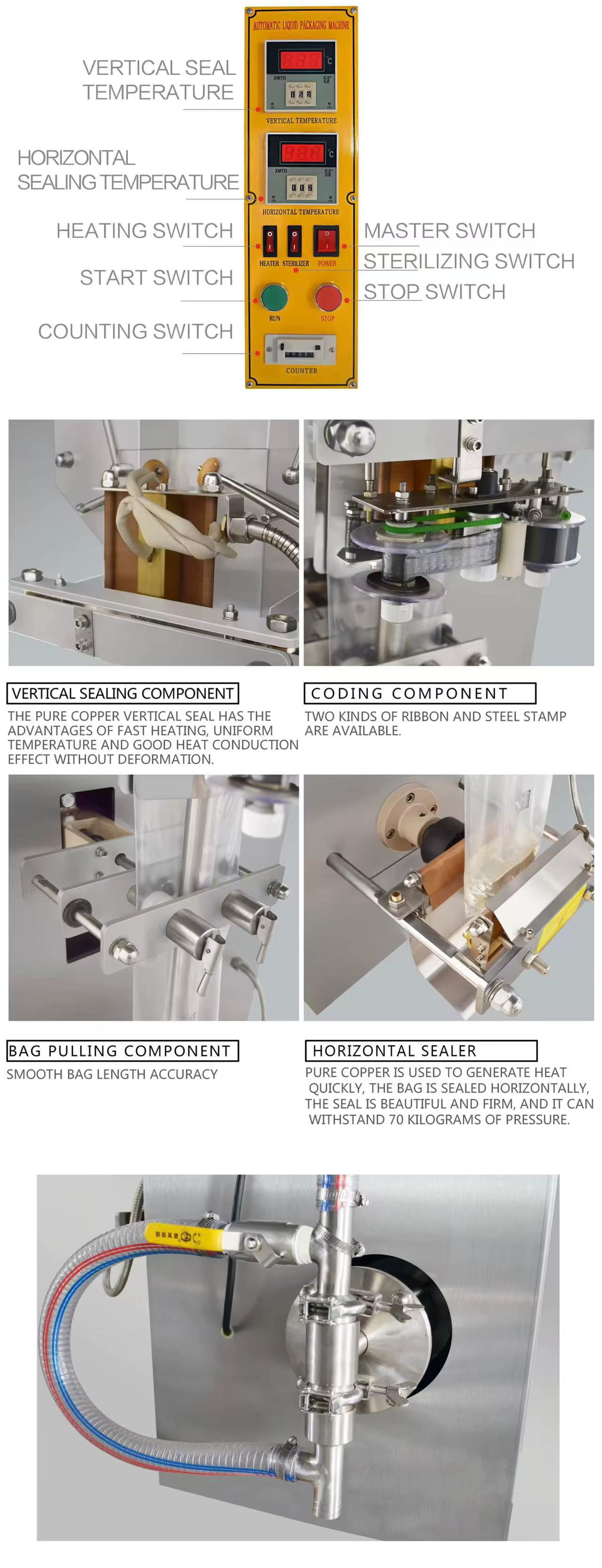 This machine is particularly beneficial for the food industry and beverage packaging, as well as any business that requires bagged liquid product filling.