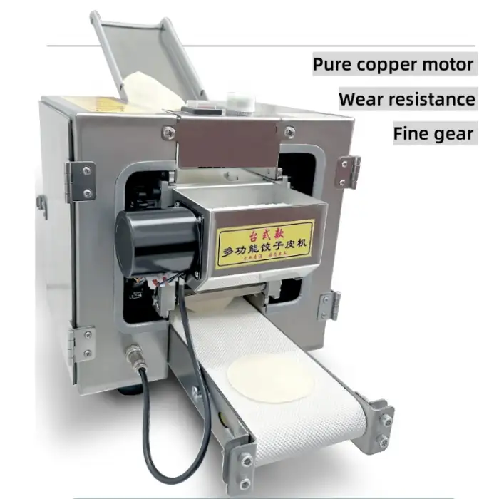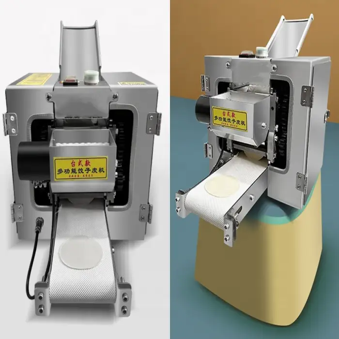 The Automatic Wonton Spring Roll Skin Maker can produce various types of dough wrappers, including wontons, spring rolls, tortillas, chapati, and dumpling wrappers.