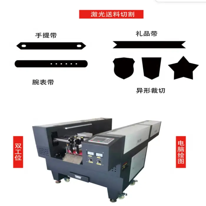 Key applications include textile manufacturing, creating custom fabric designs, cutting ribbons and webbing, producing packaging materials, and applications in crafts and DIY projects.