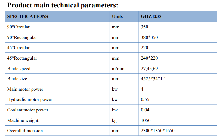 1. What is the cutting capacity of the Band Saw Machine Model GHZ4235?