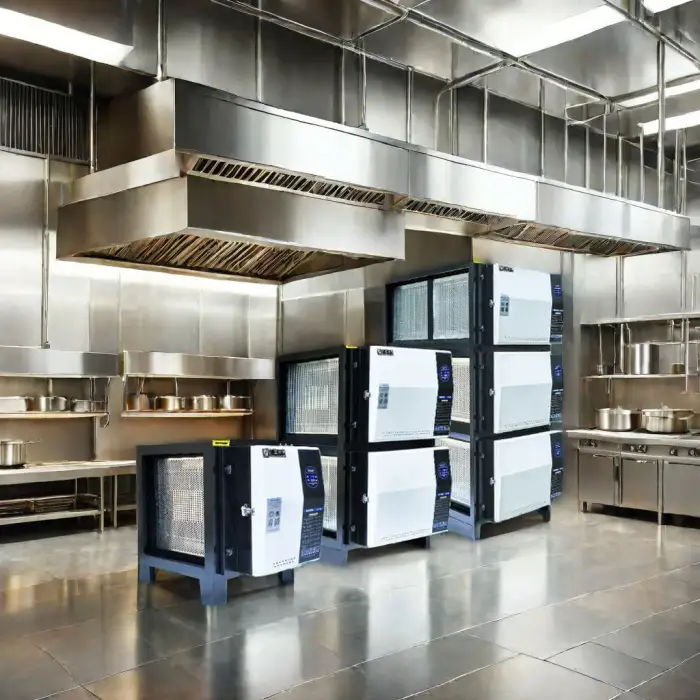 The primary function of this device is to filter out smoke and fumes in commercial kitchens, ensuring a cleaner and safer environment.
