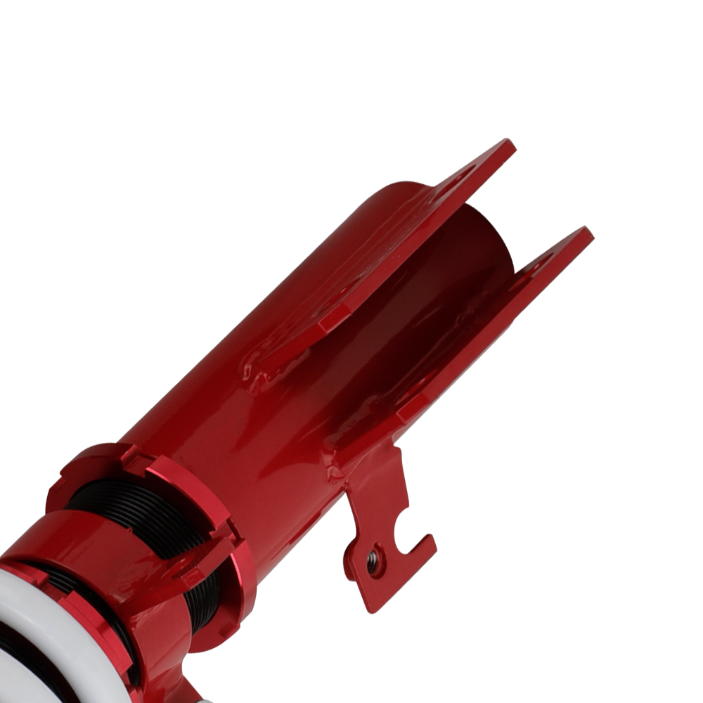 The coilovers are made with high tensile performance springs that are stress tested over 600,000 times. Most components, including mounts and collars, are crafted from 6061-T6 Billet Aluminum for durability and rust resistance.