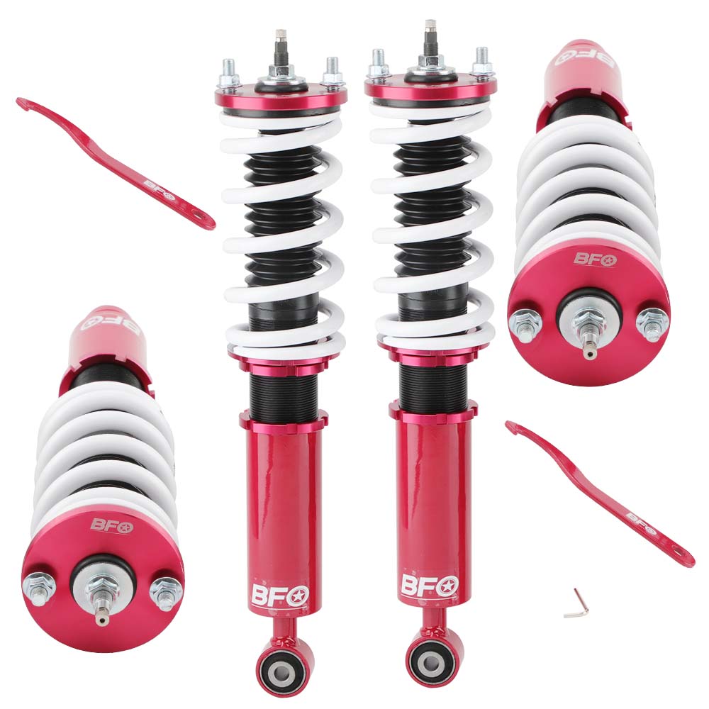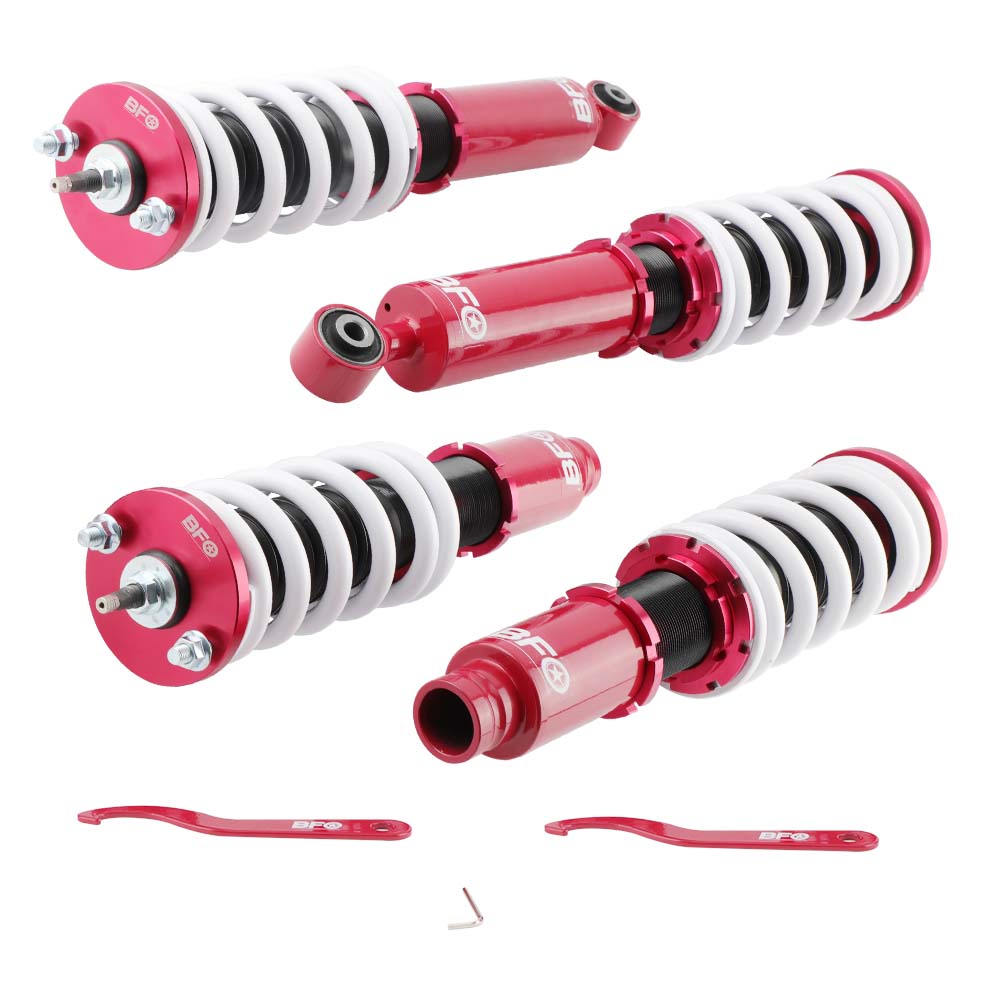 The coilovers feature 24 levels of rebound damping adjustment, allowing you to fine-tune your suspension setup for improved ride quality across various road conditions.