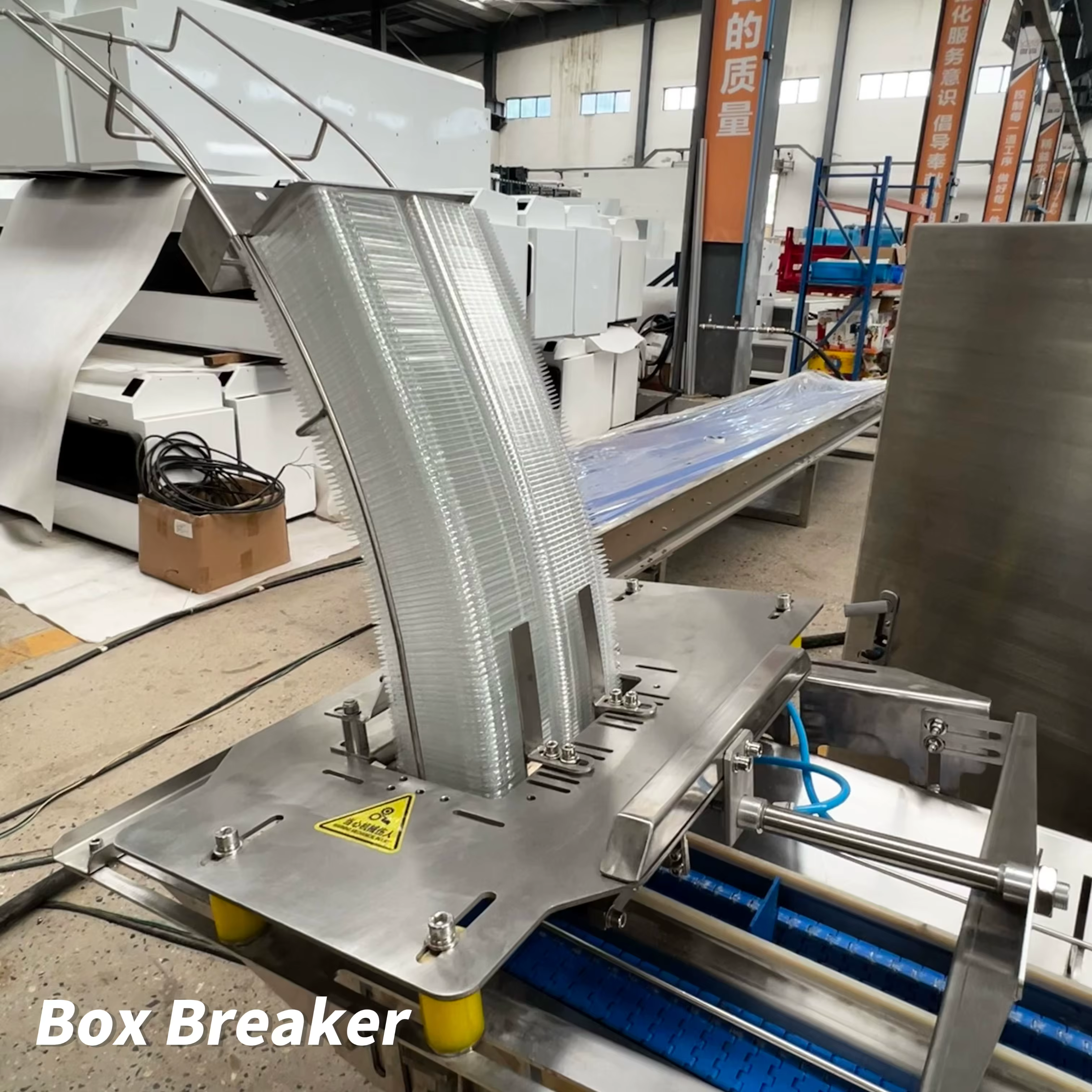The machine has a throughput capacity of 3000 to 6000 boxes per hour.