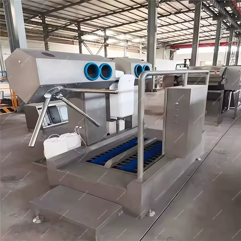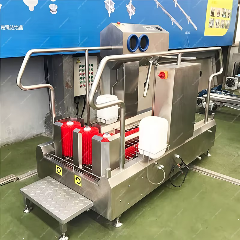 The Boot Washer Cleaning Machine is an industrial tool designed to clean and sanitize rubber boots and shoes automatically, making it ideal for maintaining hygiene in various sectors.