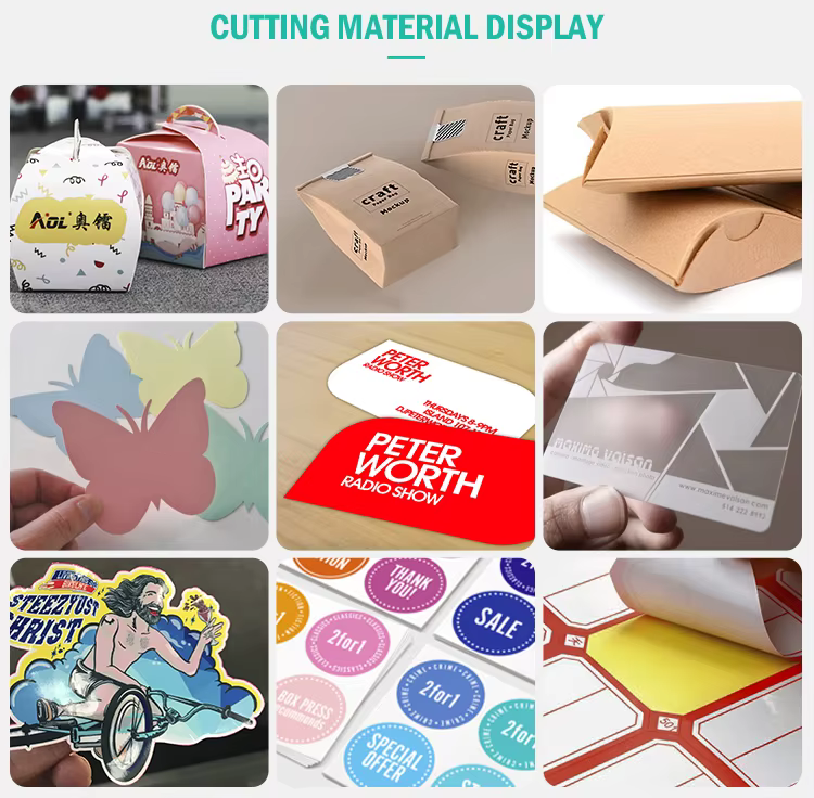 The Box-making Machine can cut various materials including paper boxes, stickers, and vinyl.